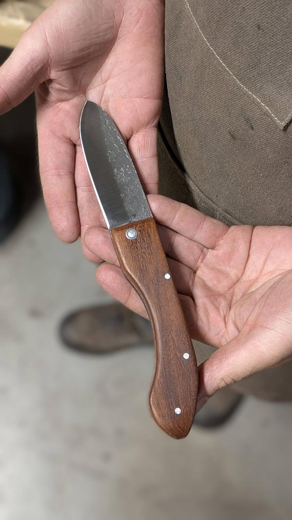 Cet atelier a dépassé toutes mes attentes... ! Cette journée avec Yann était très riche en partages, en apprentissages et surtout riche par la multitude de tâches que nous avons faites. Dessin et conception de mon couteau, toutes les étapes de forge à partir d'une simple barre de fer, choix des bois, montage, finitions... Yann est très pédagogue, bienveillant, il fait confiance et laisse une très grande liberté de création et d'autonomie, tout en apportant son aide si on ressent le besoin. Je ne m'attendais pas à être si fière de ma réalisation, merci Yann.