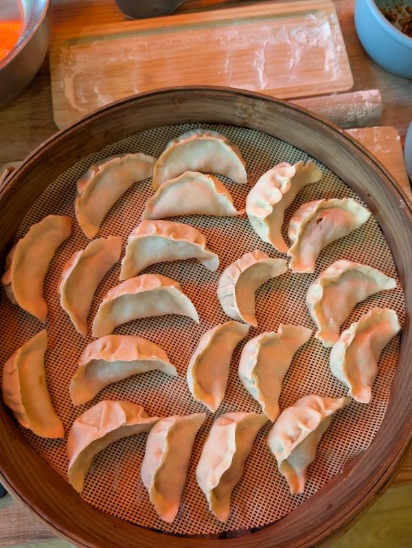Vous passerez ensuite au façonnage, où Ying vous enseignera deux techniques de pliage traditionnelles pour donner vie à vos créations : un pliage élégant pour les raviolis vapeur, et un pliage spécifique pour les gyozas.