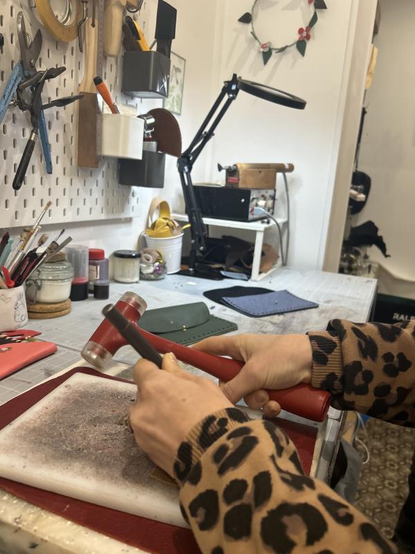 Découvrez l'atelier de maroquinière de Vania, et créez votre pochette en cuir aux mille décorations possibles !
