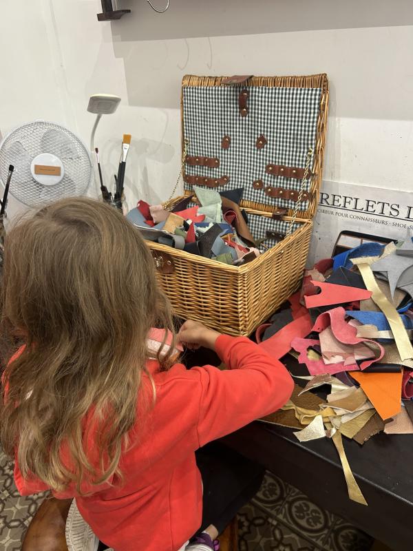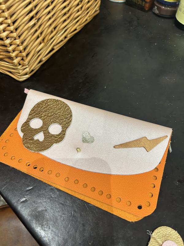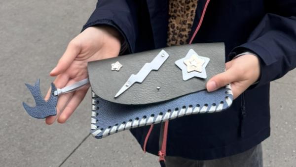 Découvrez un atelier de mode avec votre enfant et créez une pochette décorée en cuir avec Vania, artisan maroquinière