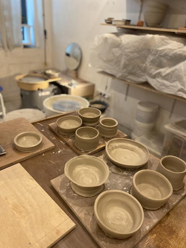 Une fois vos pièces terminées, vous les confierez à l'artisane qui se chargera du séchage, des cuissons et de l'émaillage.