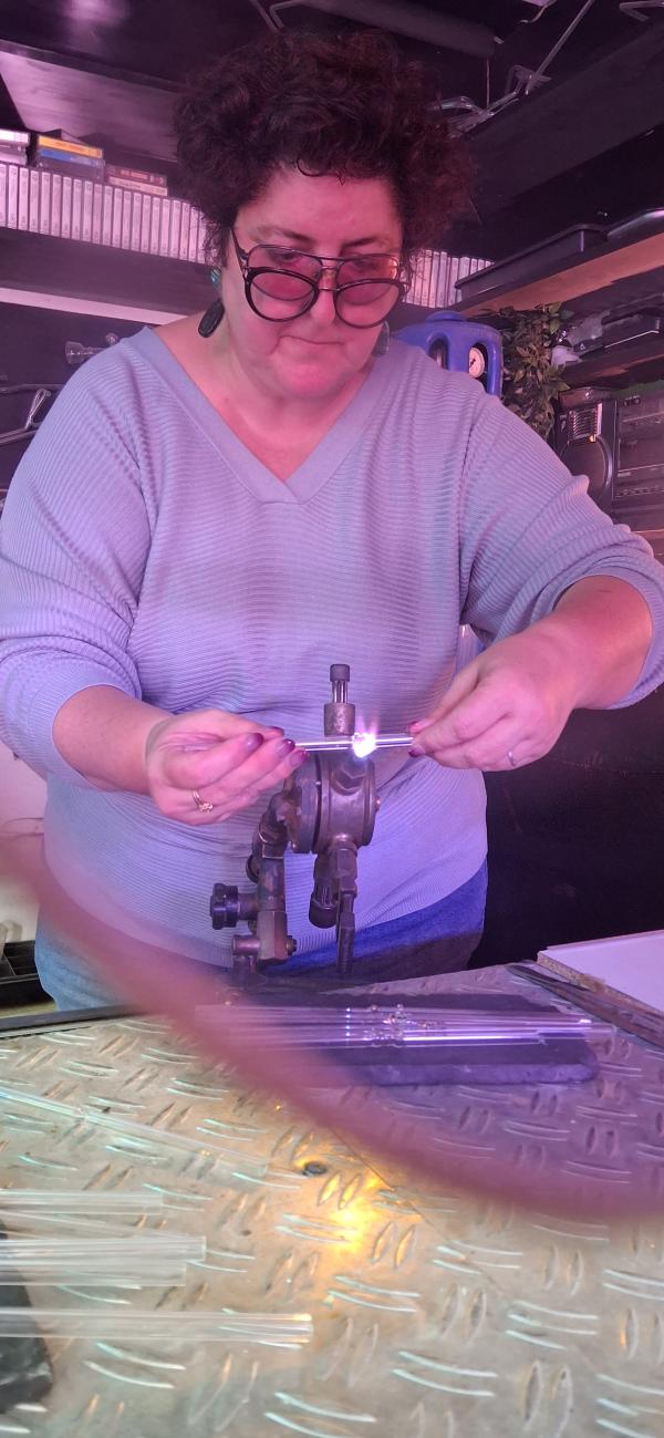 Guidé étape par étape, vous apprendrez à centrer la matière et à maîtriser une technique parmi les plus complètes pour la gestion du verre. Contrairement aux méthodes traditionnelles utilisant des cannes pleines, vous travaillerez avec du verre borosilicate en tube creux, un matériau d’exception, non conducteur de chaleur, qui permet un contrôle plus fin et précis. Cette approche, peu courante en France, vous offrira une expérience approfondie du soufflage de verre.