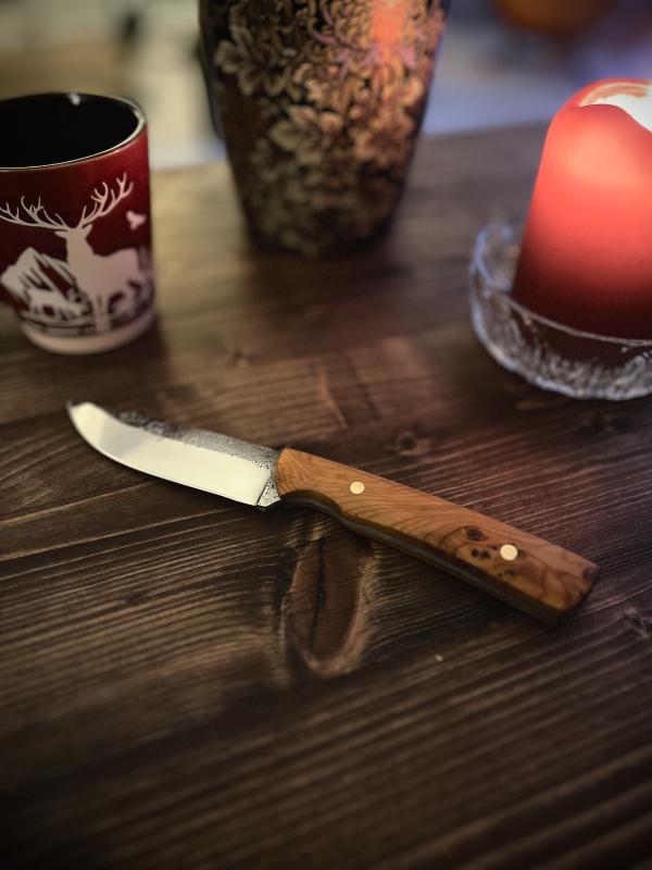 J’ai eu la chance de vivre une expérience unique, j’ai pu forger mon propre couteau sous les conseils avisés de Marcus. Une immersion fascinante dans un savoir-faire ancestral. Tout au long de la journée, j’ai découvert le comportement du métal chauffé, l’impact du marteau, le renvoi de l'enclume. Une vraie leçon de physique vivante, concrète, et captivante. Après les traitements thermiques, j’ai choisi le bois du manche, l’ai façonné selon la forme du manche du couteau, posé les rivets, puis traité le bois à l’huile. Une expérience riche et passionnante, rendue possible grâce à la patience, au savoir-faire et à la passion communicative de Marcus. Je repars avec un couteau unique, forgé de mes mains, et un souvenir inoubliable.