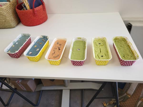 Vous pourrez personnaliser votre savon en faisant varier les couleurs, le parfum, et en choisissant un topping (fleurs séchées, coquillages, empreintes, etc.) !