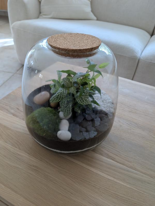 Au terme de cet atelier, vous repartirez avec votre grand terrarium, fait par vos soins et qui saura trouver merveilleusement bien sa place chez vous.