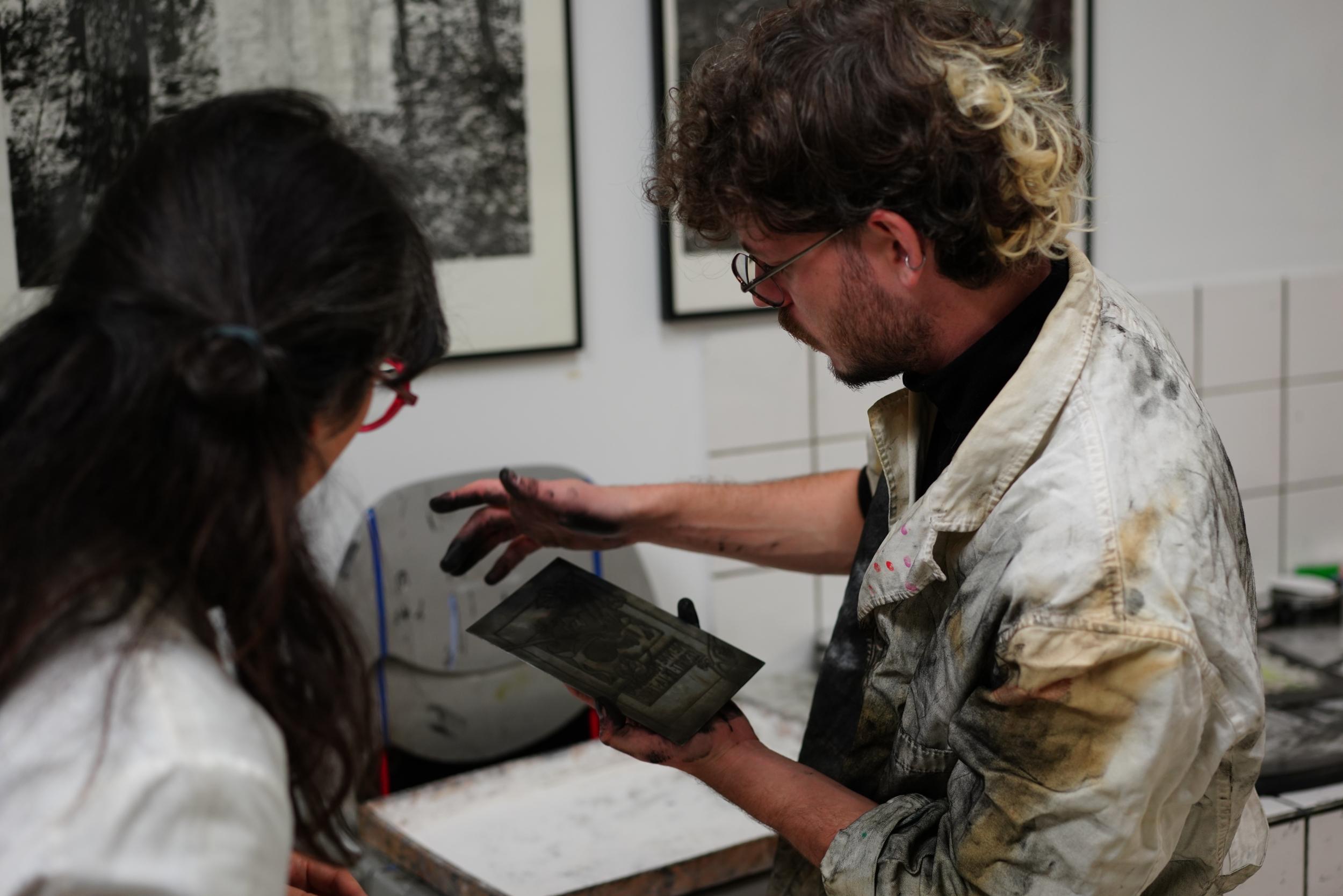 Découvrez la gravure à l’eau-forte sur métal aux côtés de Youmi, Paul, Franc et Marina, lors d’un atelier d’initiation à la taille-douce mêlant dessin, chimie et impression.