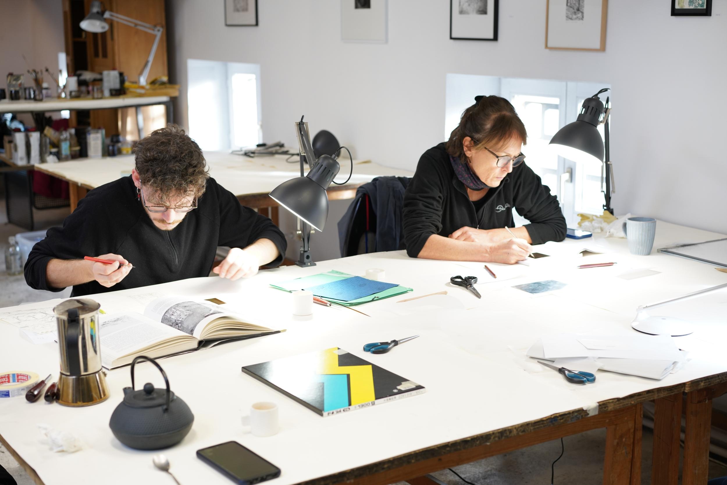 Découvrez la gravure à l’eau-forte sur métal et réalisez vos impressions aux côtés de Youmi, Paul, Franc et Marina, graveurs, à Nancy