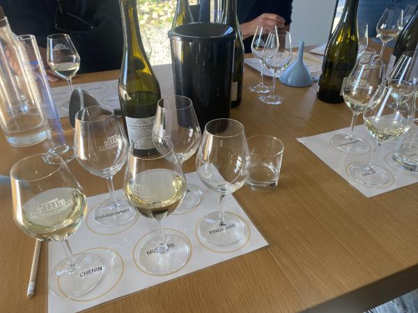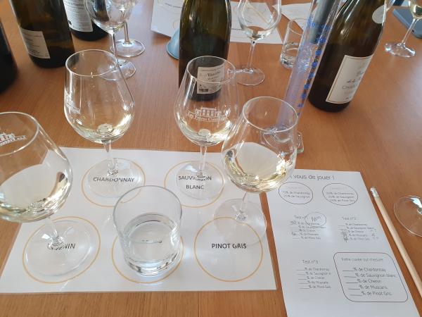 Mon époux et moi avons participé à l'atelier du 2 août 2022 et ce fut un véritable plaisir. Visiter le chai puis aller dans la petite chapelle du domaine (au frais en période de canicule) pour découvrir les caractéristiques des grands monocépages du Val de Loire (+ 2 cépages alsaciens acclimatés) fut une belle expérience. Pour terminer, constituer son propre assemblage et repartir avec sa bouteille étiquetée & fermée avec un bouchon : une idée excellente ! Un grand bravo à notre "éveilleuse d'arômes", Camille qui a su captiver tout notre atelier. Un très beau cadeau à faire ! Christine HF
