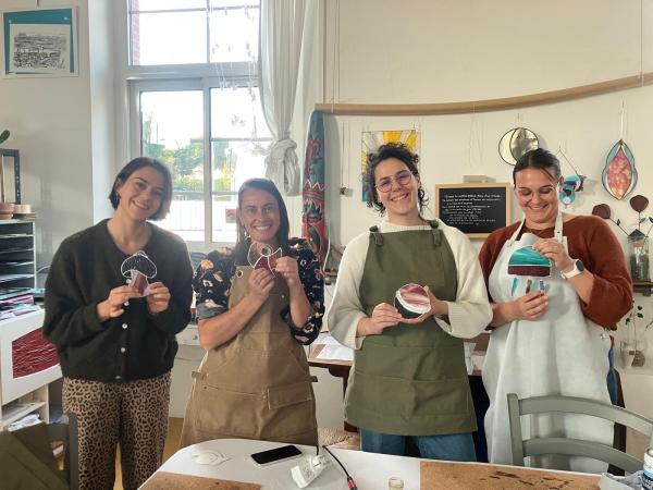 Merci Camille pour cet après-midi d'initiation au vitrail. Sympathique, passionnée, tu as le sens de la transmission de ce métier ou avec patience tu nous détailles les outils, les gestes en partant d'un dessin pour arriver à notre première réalisation. A découvrir, une belle expérience assurée