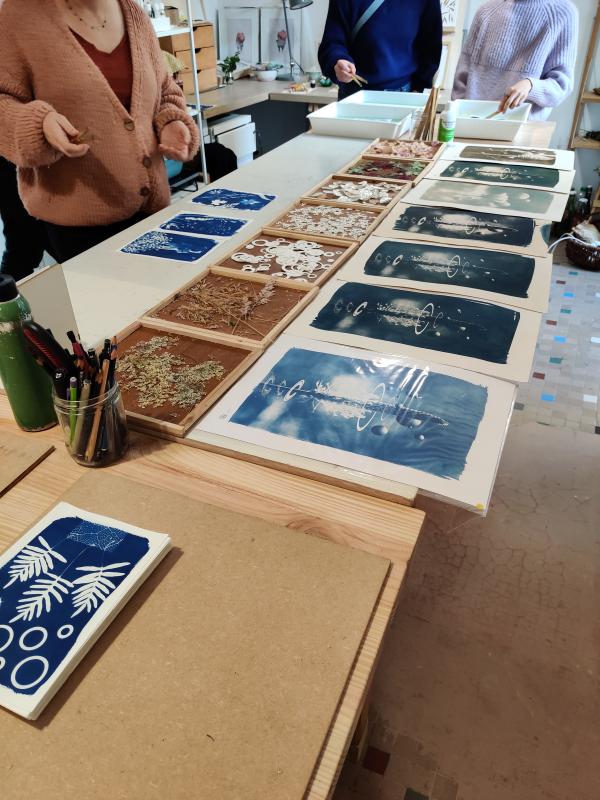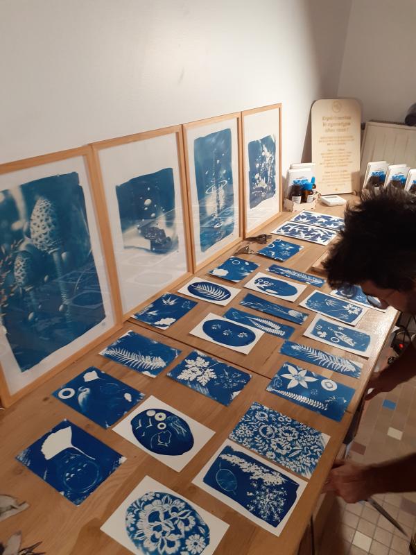 Après nous avoir raconté l'histoire du cyanotype, Fanch nous a initié aux différentes étapes de réalisation. Les possibilités sont infinies et le rendu est toujours chouette. De quoi repartir la tête pleine d'idées pour nos futures créations ! Merci !
