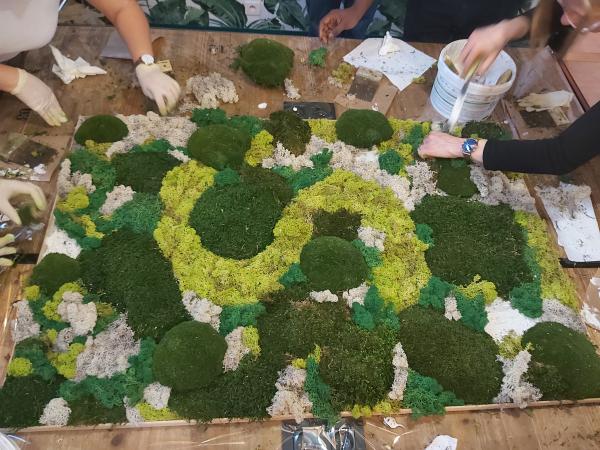Ce sera alors à vous de jouer ! Chacun sera ici invité à mettre la main à la pâte, ou plutôt dans la mousse. Votre objectif ? Réaliser ensemble un grand panneau végétal (120x60cm), idéale pour décorer votre open-space ou un espace partagé !