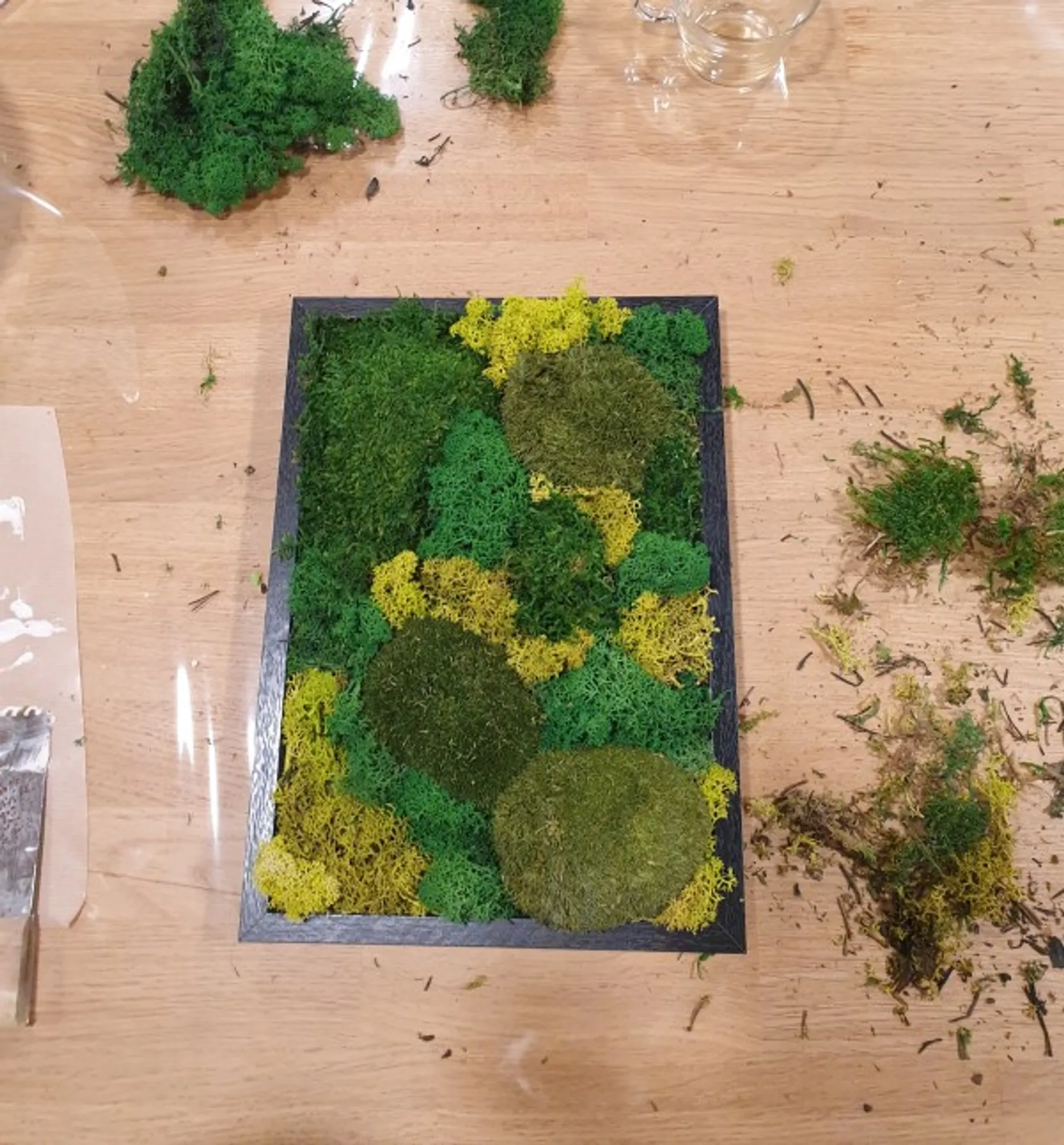 Ce dernier vous fournira ensuite de la mousse, du lichen, et un support pour que vous puissiez les y disposer selon vos goûts, pour une composition 100% personnalisée !