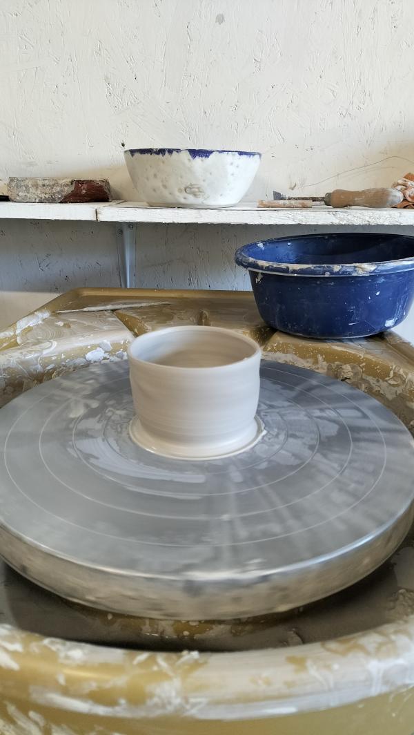 L’atelier commence par l’apprentissage des bases du tournage. Vous serez guidé par Karine à travers les gestes essentiels : centrer la terre, la monter et commencer à façonner votre première pièce directement sur le tour. Pas à pas, vous découvrirez la technique, apprenant à travailler le matériau pour le transformer.