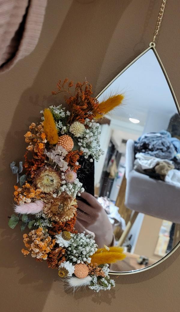 Plongez dans l'univers des fleurs séchées avec Marine et créez votre propre miroir fleuri lors de cet atelier créatif.