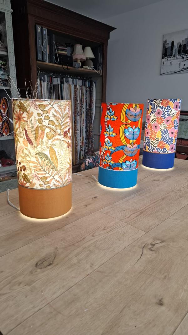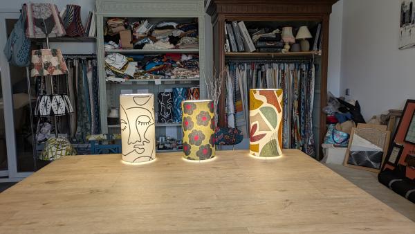 J’ai passé un excellent moment et je n’ai pas vu le temps défiler tellement Séverine sait partager sa passion au groupe. J’ai adoré sa sympathie et sa bonne humeur, sa pause thé et son gâteau au chocolat fait maison ! Après le choix des tissus et avec ses conseils avisés, on mesure, on trace, on coupe, on colle, on ajuste et oh magie 🤗 le résultat est là, les lampes se pavanent devant nous 💃🏿 ! Top du top, on repart toutes avec nos créations, pas peu fières du résultat. Merci Séverine.
