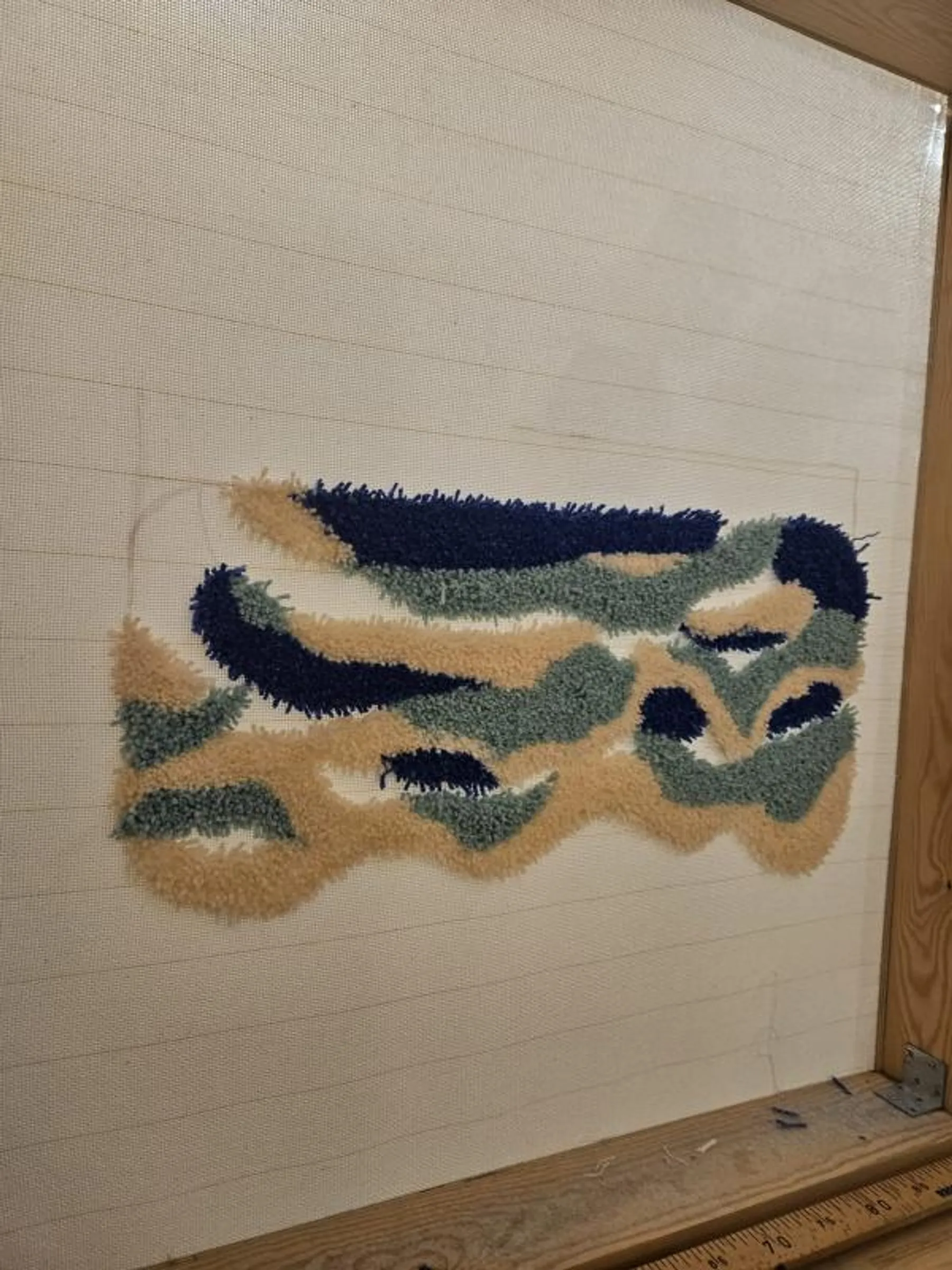 Avant de vous lancer, vous vous entraînerez sur une toile d'essai pour maîtriser le tufting gun. Une large palette de laines colorées sera à votre disposition ; si vous avez une couleur spécifique en tête, n'hésitez pas à en informer Olivia avant votre arrivée.