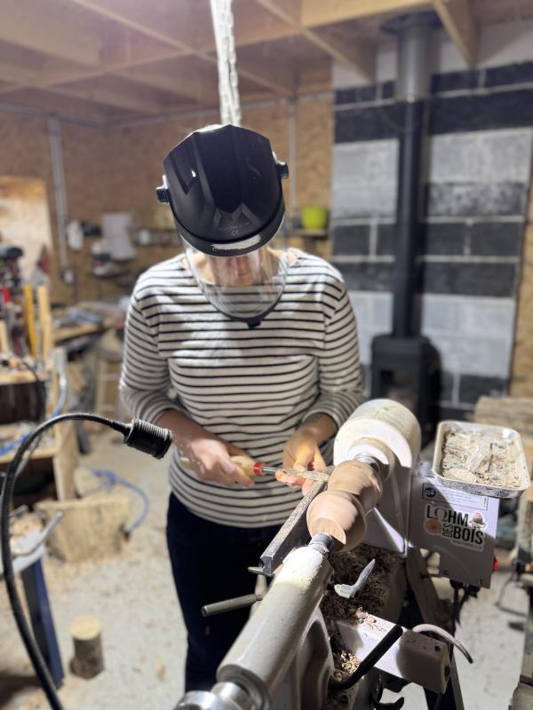 Après quelques heures passées auprès de Marc, passionné par le beau bois et le tournage, j'ai été initié à la maîtrise de cet discipline, où se mêlent les odeurs des copeaux, la découverte dans l'avancée du processus du veinage qui mettra en valeur notre pièce, le tout agrémenté de conseils dans une ambiance détendue et chaleureuse. Un stage fort agréable, avec la fierté d'avoir fabriqué un ustensile qui me servira tout les jours et pour longtemps. 👍👍👍