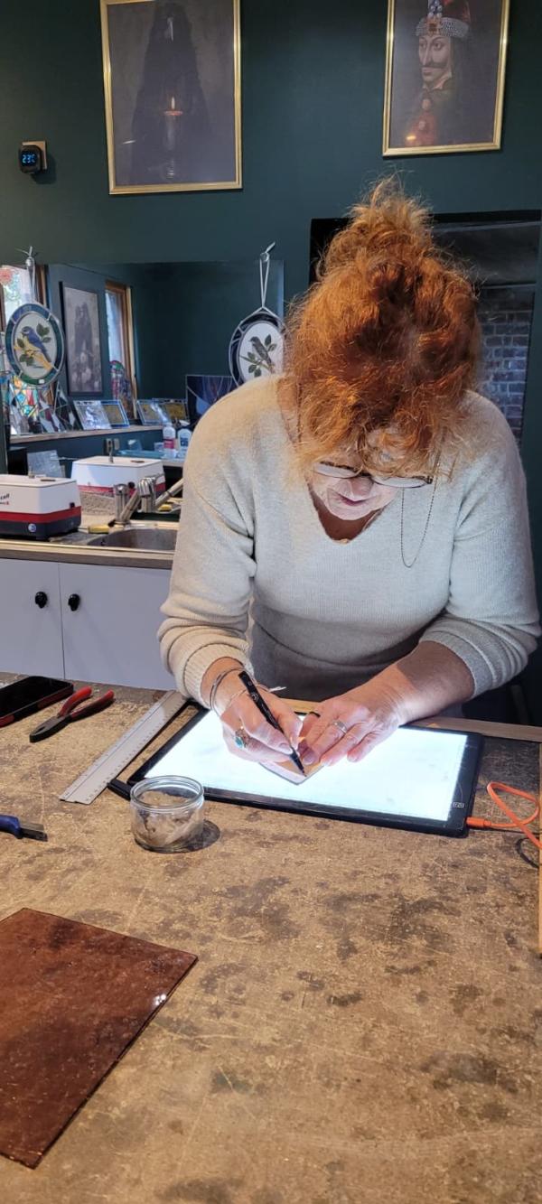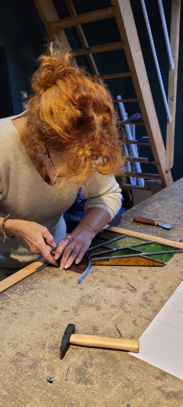 Découvrez l'art fascinant du vitrail et créez votre magnifique vitrail 30 x 30 cm avec Patricia, vitrailliste