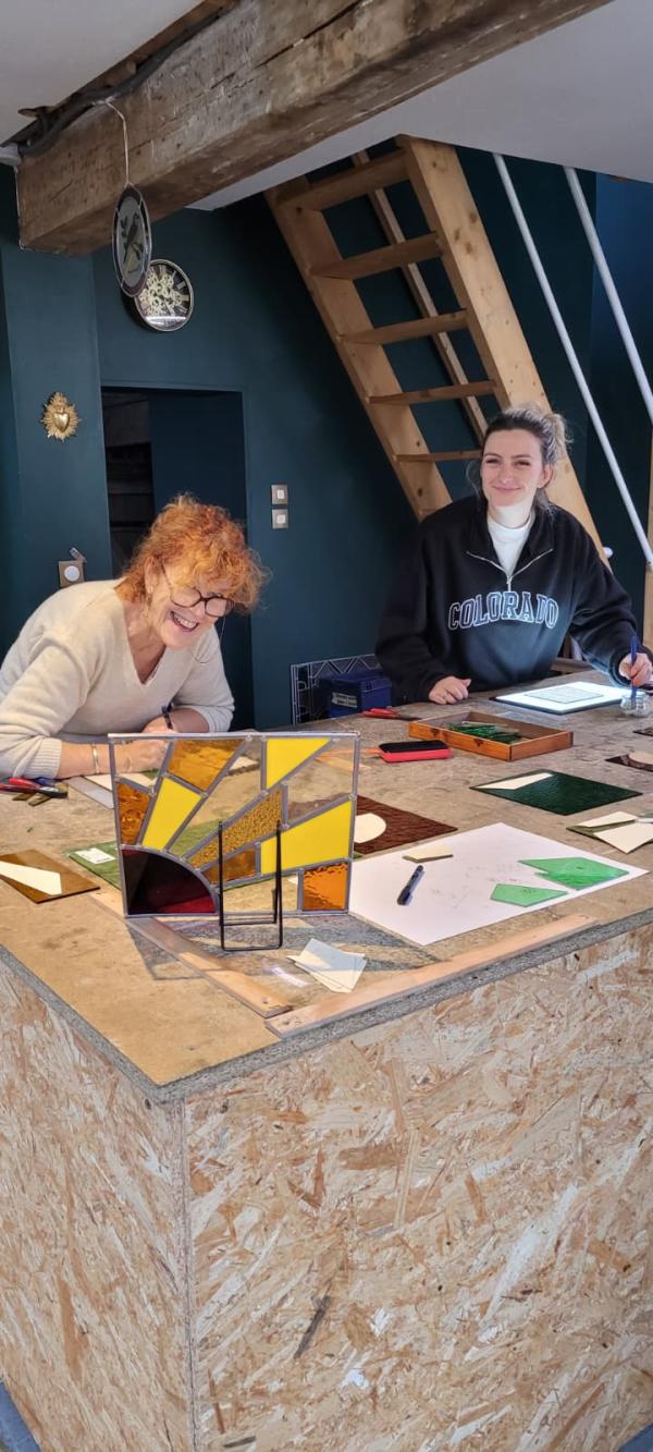 Expérience vraiment sympathique. Patricia et Lucas nous ont accueillis très cordialement, nous avons passé une bonne après-midi enrichissante à apprendre comment réaliser un vitrail et nous sommes repartis avec. Nous recommandons cet atelier à tout ceux qui veulent un moment de détente, de pédagogie et de création …Nathalie et Alain