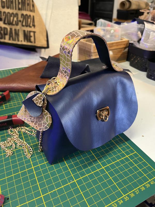 Géraldine propose un vaste choix de créations, de cuirs colorier texturés, de matériel. J'ai fabriqué mon sac à main, unique, à mon goût. C'est une très belle découverte !