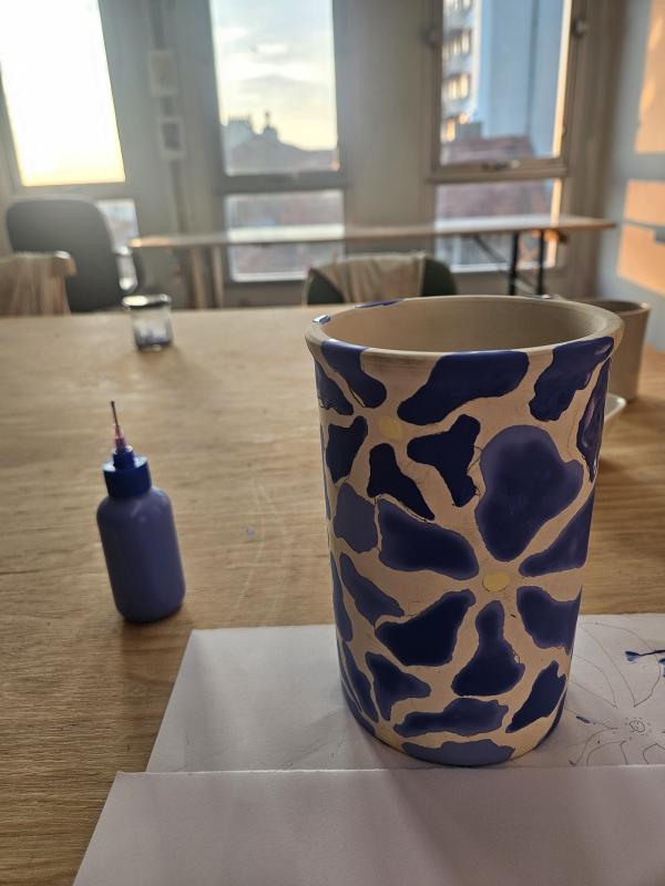 Après une brève introduction, Amandine vous proposera une sélection d’engobes aux teintes douces et pastel. Vous découvrirez différentes techniques de décoration, accessibles et ludiques, comme l’utilisation d’éponges, de pochoirs ou encore la technique des bulles. Chacun pourra choisir l’approche qui lui plaît pour personnaliser son propre vase.