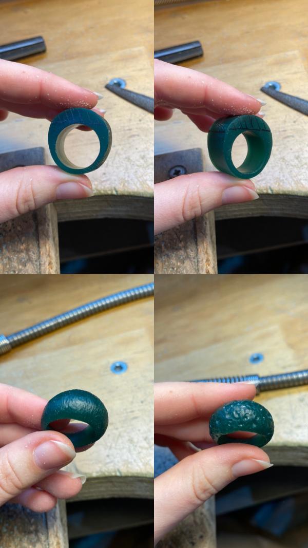 J'ai beaucoup aimé l'atelier d'Andrea pour réaliser une bague en argent avec la technique de la cire perdue. Le processus est très créatif, on expérimente librement avec la cire pour obtenir le rendu de la texture que l'on souhaite. Andrea nous donne beaucoup de conseils, sur les propriétés de la cire et aussi sur l'utilisation des différents outils selon les motifs que l'on veut obtenir pour le joli rendu final.