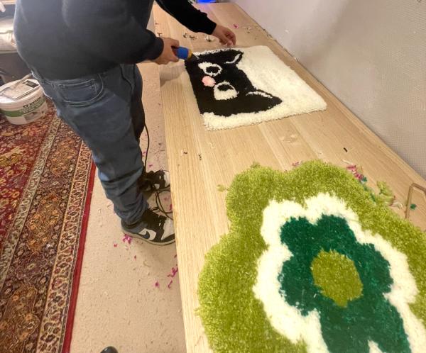 Expérimentez le pouvoir du tufting et confectionnez votre tapis personnalisé avec Andréa, tufteuse
