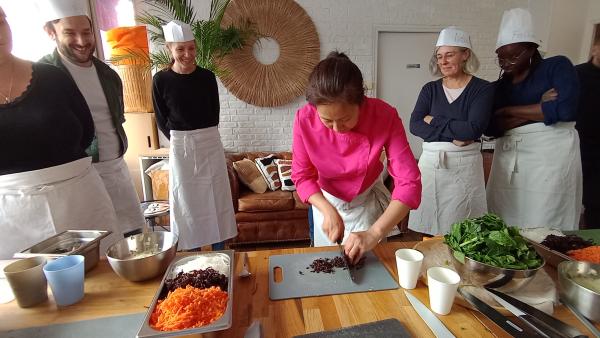 Atelier très sympathique ! J'ai beaucoup apprécié l'organisation et l'attention à chacun de la cheffe Ange. Le résultat était delicieux 😋