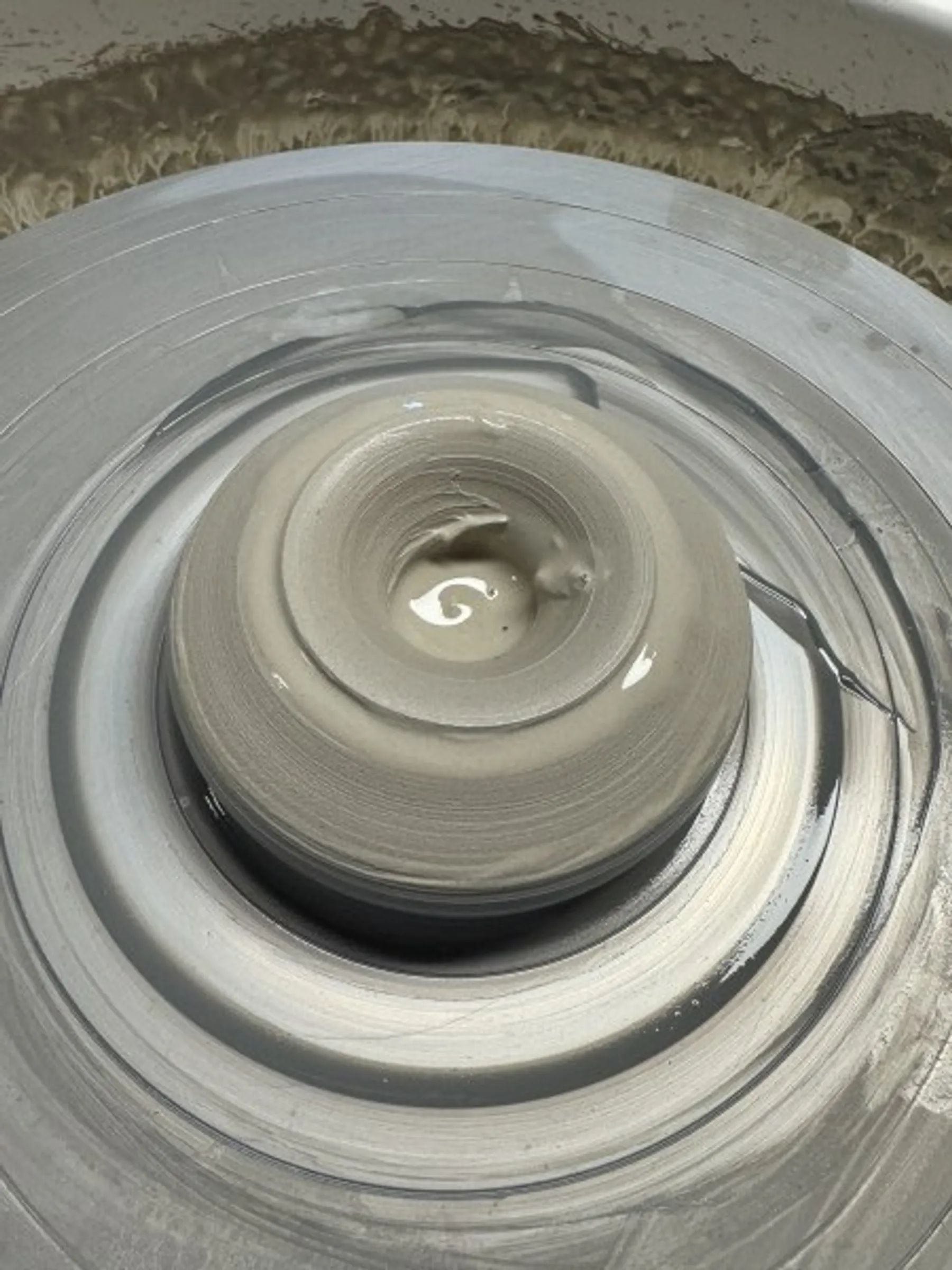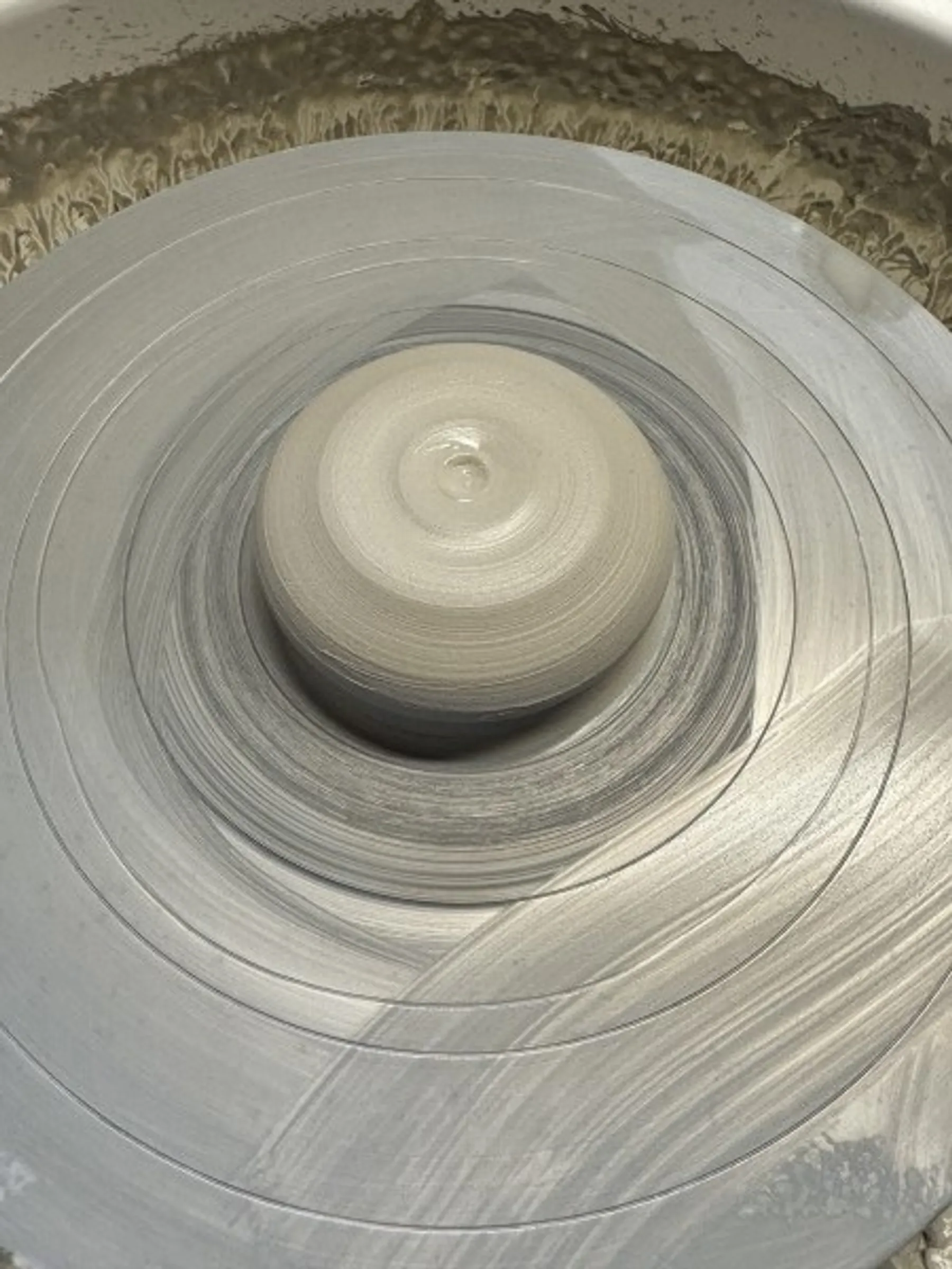 L'une des premières étapes de cet atelier est le travail et le pétrissage de la terre. Après l'avoir pesée, vous chasserez les bulles d'air - c'est important ! Une fois la terre souple et vos mains échauffées, vous vous installerez sur le tour. Vous monterez une quille pour éliminer les éventuelles dernières bulles d'air et centrer la terre sur le tour grâce à la force de vos mains et votre corps !