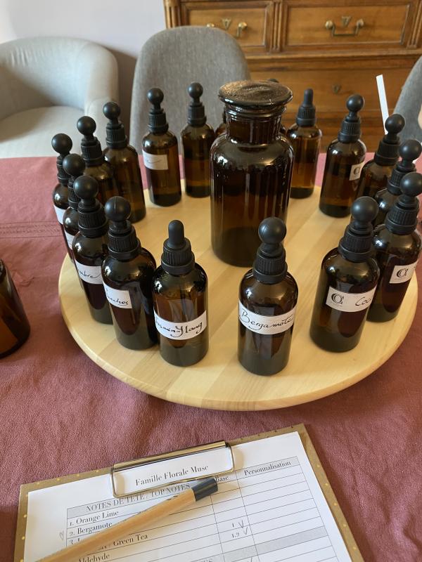 Bruno est un hôte charmant qui a bien pensé son atelier : on commence par quelques échanges sur notre relation avec le parfum, une courte partie théorique très intéressante qui pique la curiosité et donne encore plus envie de se lancer ! Arrive ensuite le travail de composition et c'est un véritable plaisir de se plonger dans tant de senteurs et de se laisser surprendre. Un bel atelier "madeleine de Proust" !