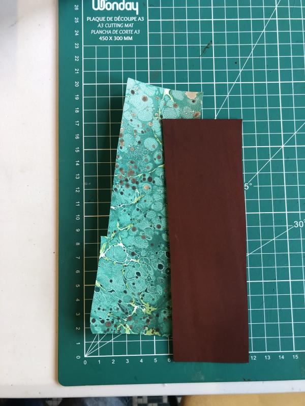 Puis, place à la pratique ! Vous débuterez par le choix du cuir et du papier marbré. Vous réaliserez ensuite l’encollage du cuir avant de placer l'ensemble à sécher sous poids.
