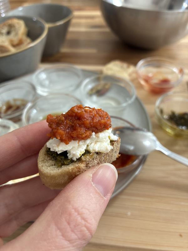 Vous découvrirez, dans un premier temps, l'univers et l'atelier de Claudio autour d'un apéritif souvent végétarien, préparé par ses soins. Les fromages frais italiens et les sauces qu'il propose au cours de l'année réveilleront vos papilles !