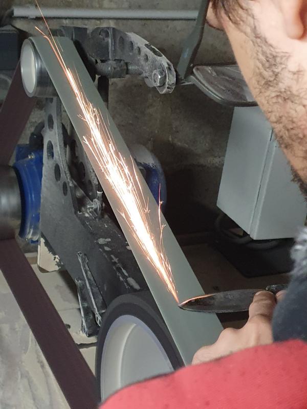 Après une pause déjeuner (un micro-ondes, un four et une plaque sont à disposition, et des commerces se trouvent à proximité), vous poursuivrez avec les traitements thermiques nécessaires pour renforcer la lame. L’après-midi sera ensuite consacré à l’affûtage, au travail de finition et à l’utilisation du backstand, une machine qui permet de polir et affiner la lame.