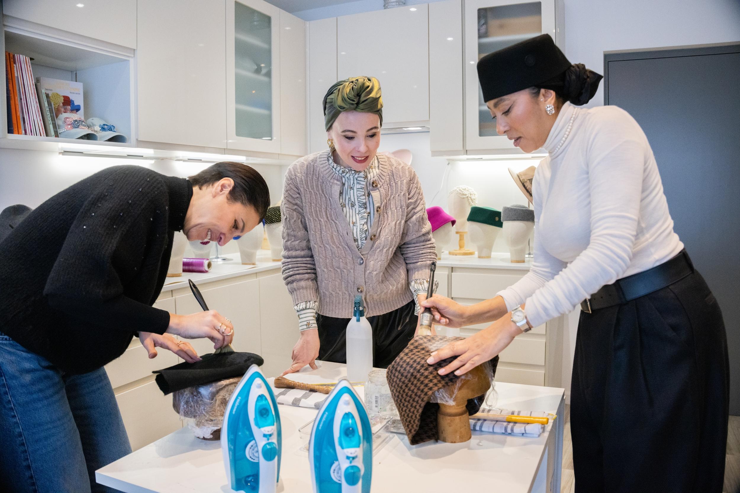 • Accueil convivial et introduction : commencez par faire connaissance avec l’artisane et découvrez l’atelier, les outils et les différentes étapes de fabrication d’un chapeau. L'espace se distingue par une collection exceptionnelle de plus de 100 moules à chapeaux, dont certains datent des années 50 et 60. Ces moules du XXᵉ siècle permettent de créer des modèles aux lignes vintage, tout en laissant la possibilité d’opter pour des formes plus contemporaines.