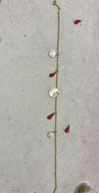 Ravie de mon expérience : Kelly est très attentive, propose des choix judicieux, respecte le goût et le projet du stagiaire, répète les gestes techniques mal assimilés, aide de manière opportune. Côté matériaux, c'est la caverne d'Ali Baba... L'embarras du choix. Repartie avec le double collier imaginé et réalisé, que je porte déjà. Merci, Kelly !