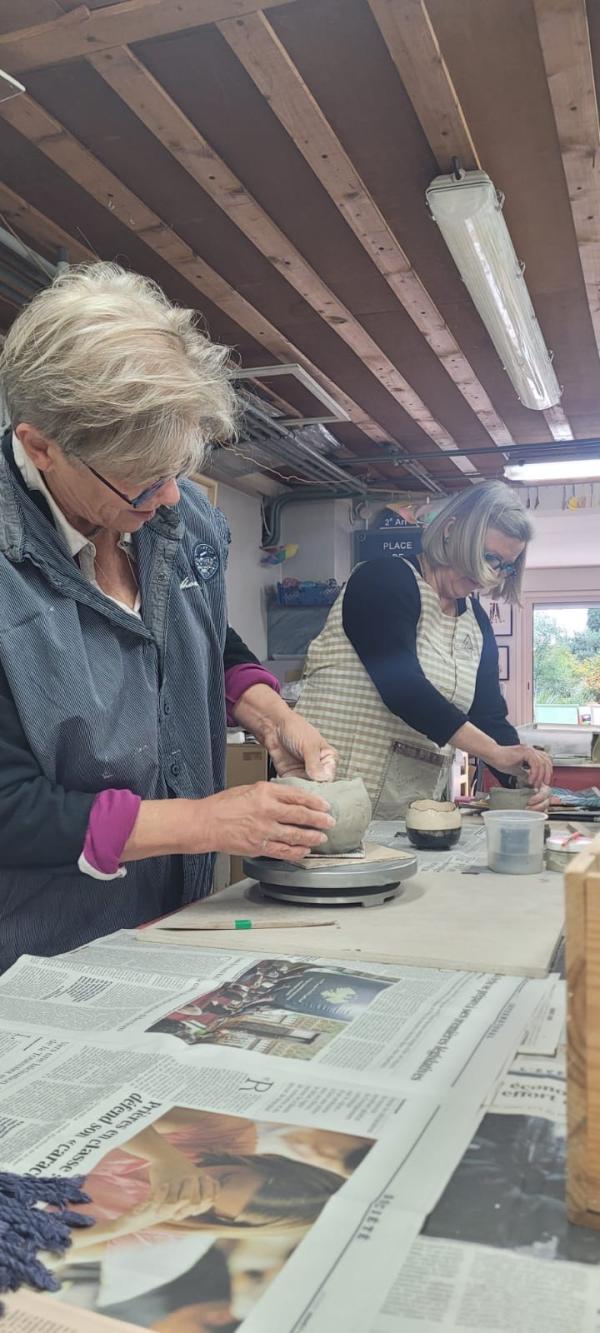 En fin d'atelier, vous nettoierez le matériel et confierez vos œuvres à l'artisane qui se chargera du séchage, de l'émaillage et des doubles cuissons. Vous conviendrez aussi des modalités de récupération de vos pièces directement avec elle.