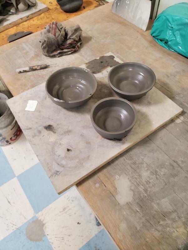 J'ai choisi cet atelier avec Lucie parce que l'ambiance de l'atelier avait l'air très mignonne et que la céramique obtenue in fine avait aussi l'air d'être d'une très jolie couleur. J'étais ravie de faire ce cours avec Lucie, qui est vraiment une super prof ! Je recommande à 100 %. J'ai appris plein de choses, pas que sur la technique de la poterie en elle même, et je pense que je reviendrais. Ci-joint des photos des bols qu'on a décidé de garder. On était deux, avec une amie, à participer à l'atelier, et au total on a pu faire 3 pièces chacune mais on a décider que des garder ces trois ci. Je n'ai pas encore de photos du résultat final post-sèche et post-cuisson, mais j'ai très hâte de voir le résultat !