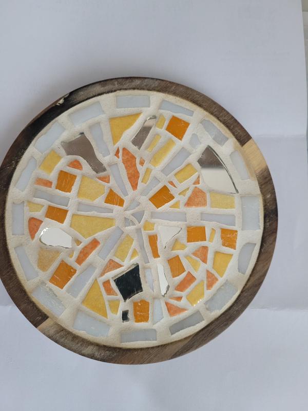 Une fois les matériaux choisis, vous passerez à la création de votre pièce. Vous procéderez à l'assemblage des tesselles sur la base de votre projet, en suivant les instructions et les conseils de Michele. Elle vous accompagnera tout au long de l’atelier pour vous aider à ajuster et coller chaque élément correctement.
