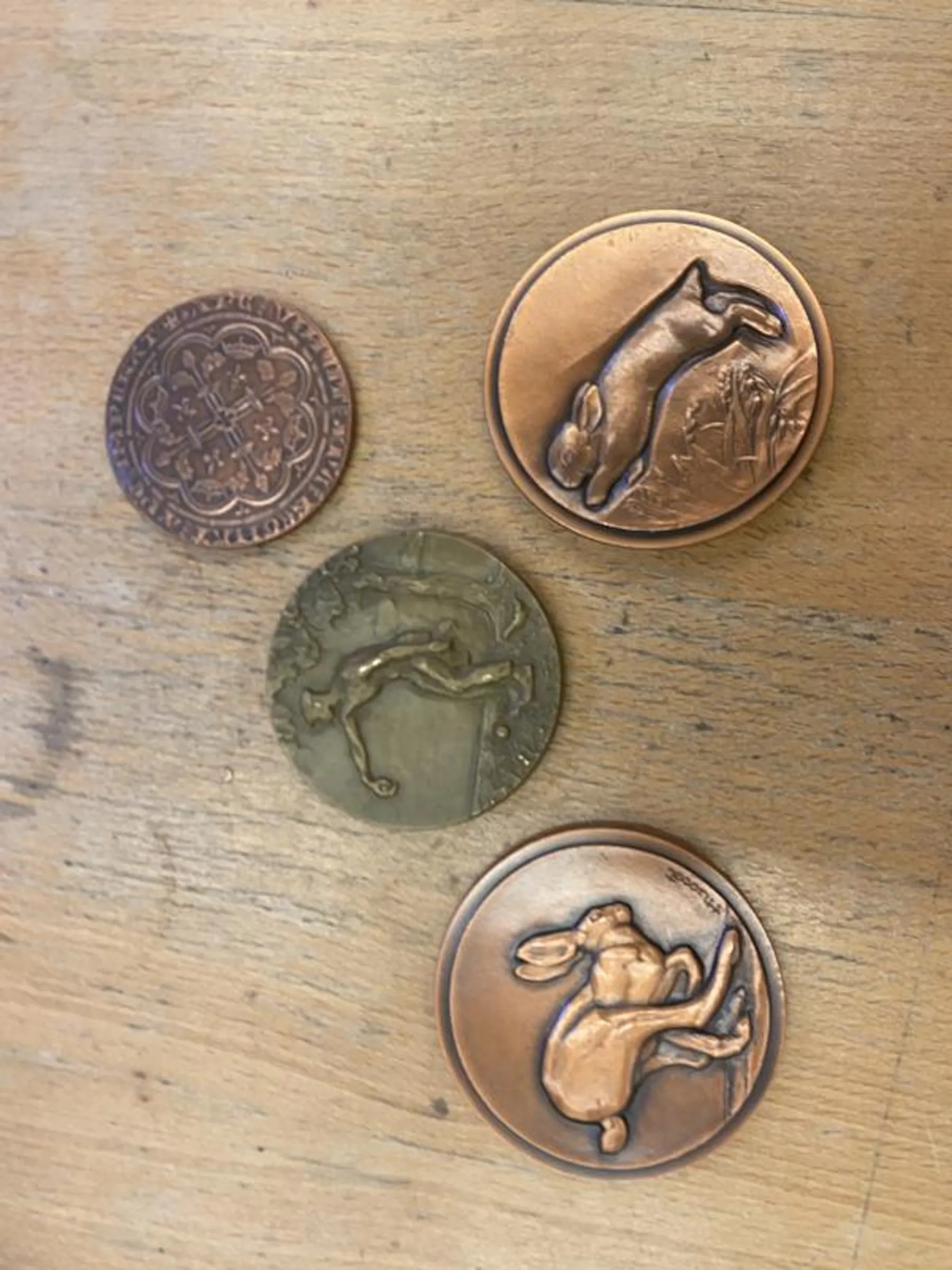 À votre retour, il sera temps de démouler votre médaille et de la patiner à l'aide d'un pinceau - lui donnant un aspect or, argent ou bronze - un peu comme dans un atelier de fabrication de monnaie. Vous pourrez même la personnaliser davantage en y ajoutant des décorations.