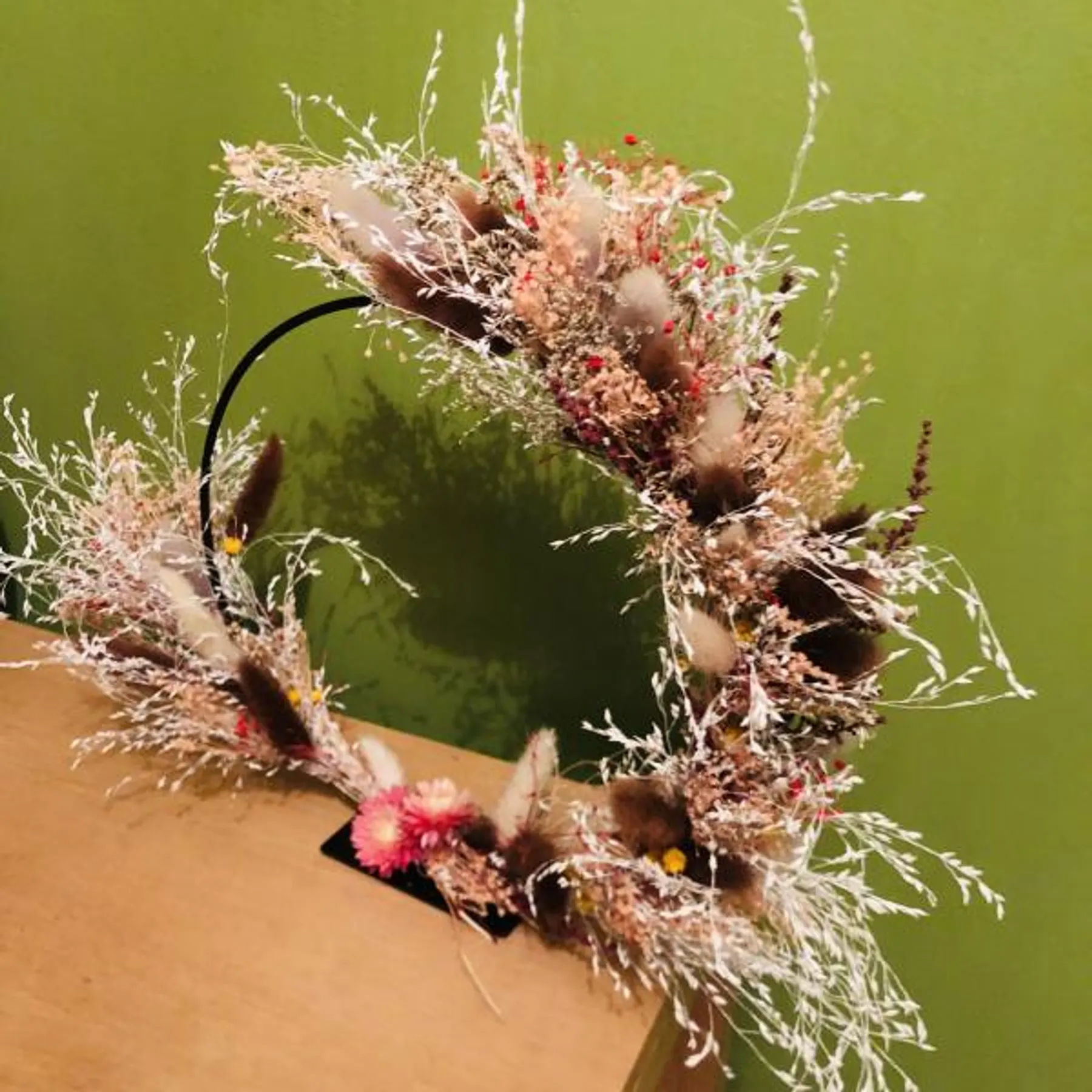 Lors de cette découverte d'une durée d'1 h 30, vous apprendrez à réaliser une belle couronne de fleurs séchées.