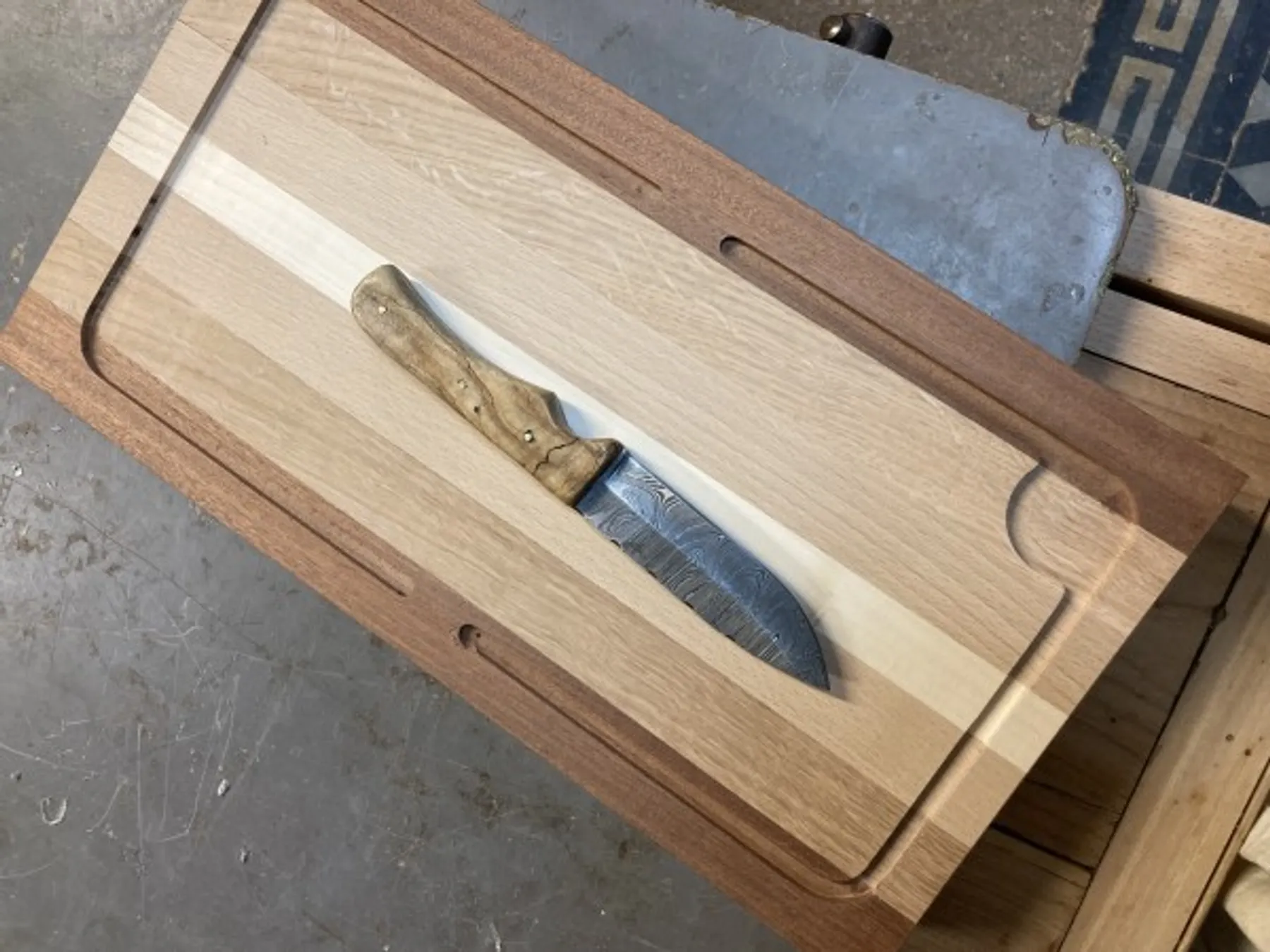 Celui-ci vous ouvre les portes de son atelier d'ébénisterie, où vous aurez le privilège de concevoir votre propre billot de table en bois ainsi que votre couteau personnalisé.