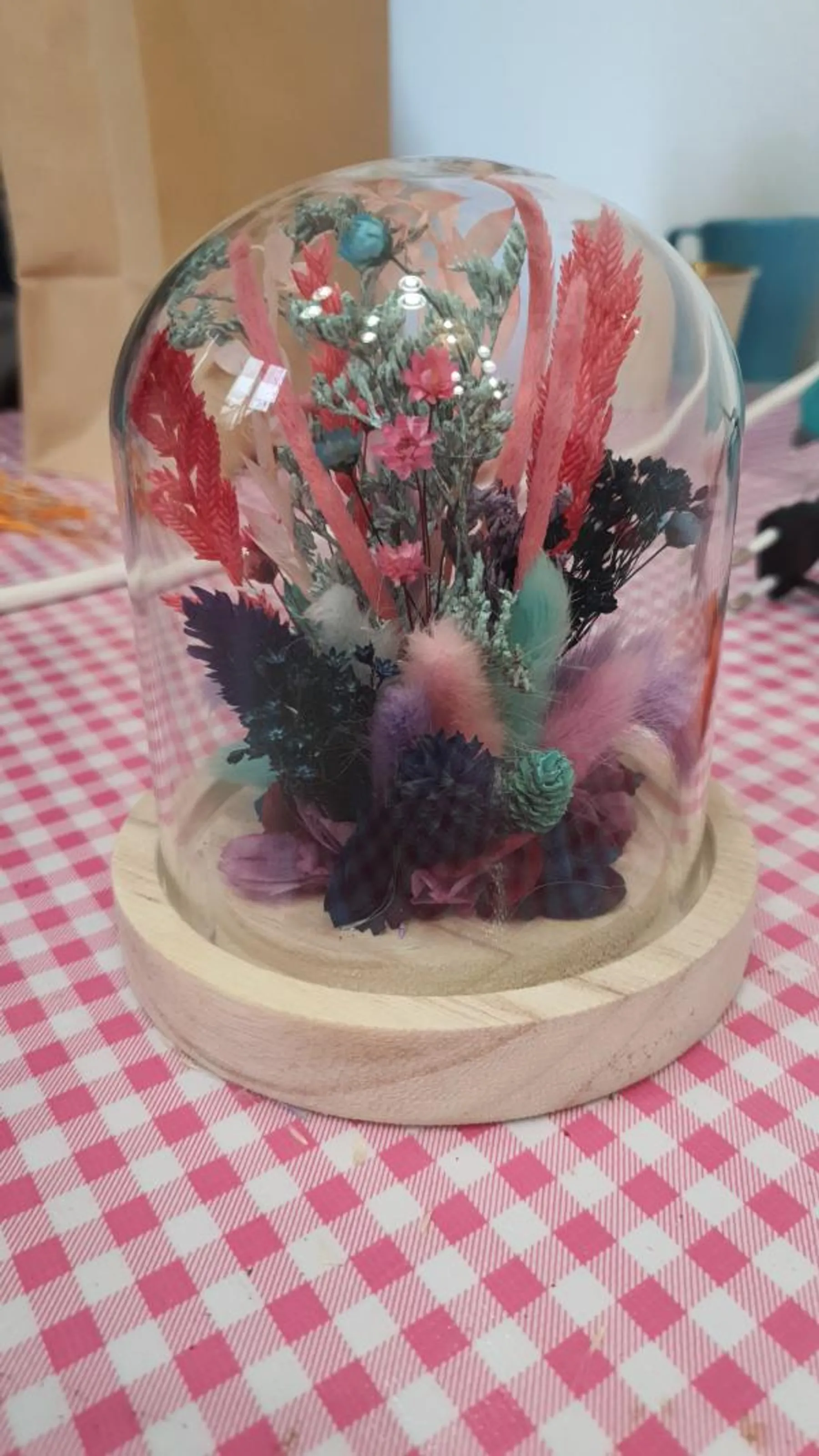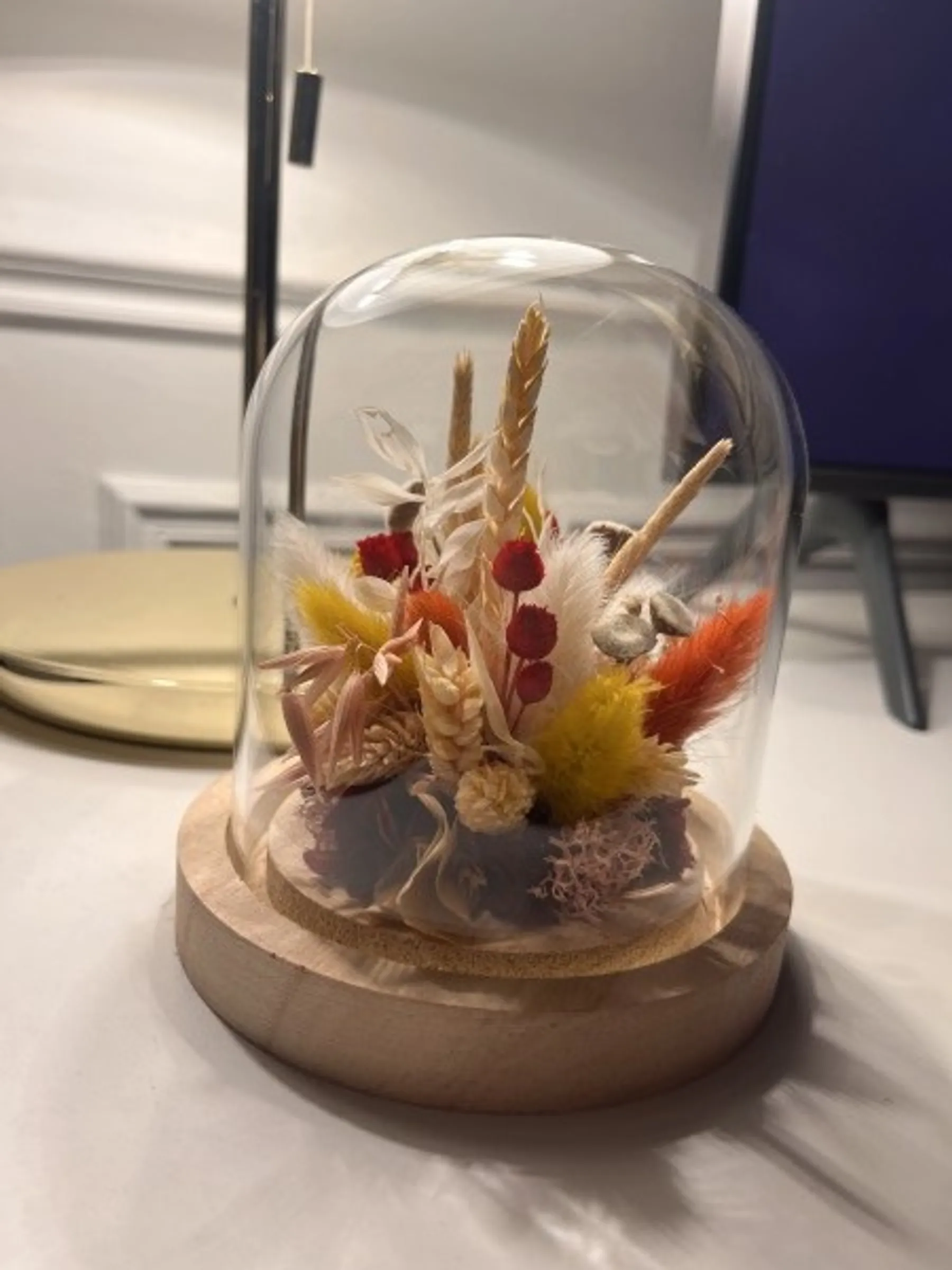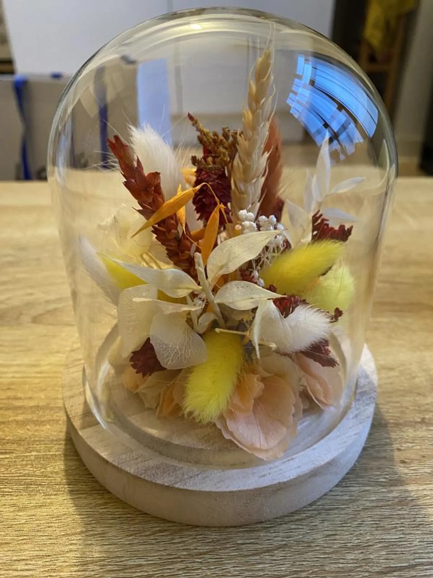 À l'issue de cette session, vous repartirez avec votre magnifique cloche abritant vos fleurs favorites, comme un souvenir éternel de ce joli moment de création !