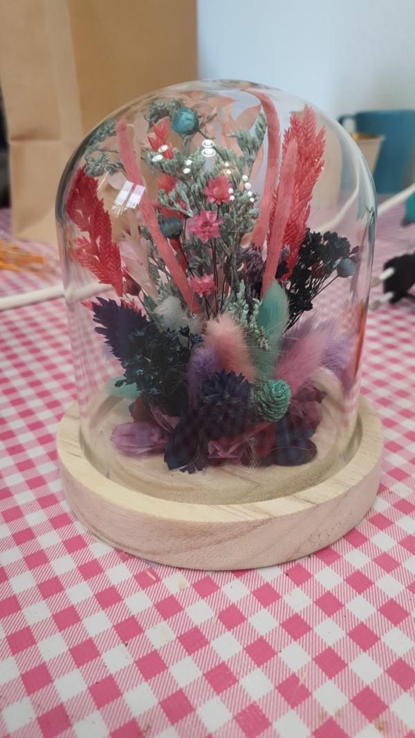 Ma meilleure amie et moi avons participé à l'atelier cloche de fleurs séchées et nous avons adoré ! Ça nous a créé un très beau souvenir aussi bien dans nos mémoires que sur nos étagères, merci beaucoup pour cette expérience ! ☺️