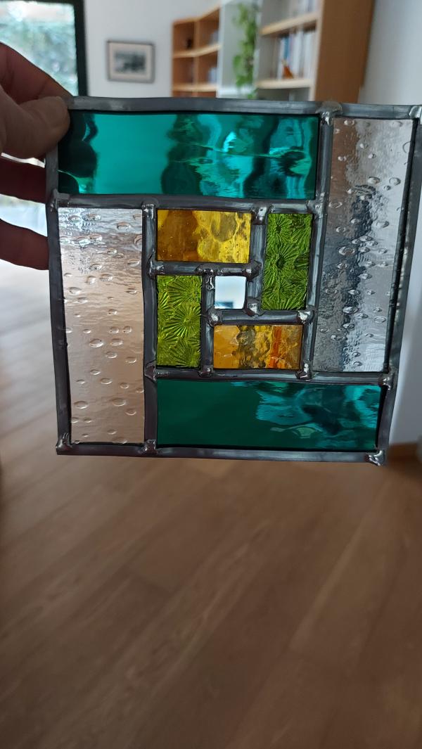 Merci Valérie pour votre accueil, votre pédagogie et l'organisation de l'atelier, ce fut une expérience très intéressante. Je suis très contente du petit vitrail réalisé et maintenant j'ai très envie d'approfondir cette technique !