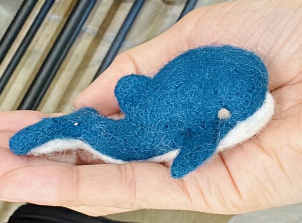 J'ai adoré cet atelier, la douceur et la pédagogie de Yu-Ching accompagnée de l'humour de son compagnon traduisant en français, les schémas et explications étape par étape très claires qui finalement font opérer la magie et donnent aux fibres de laine la forme de baleine qui paraissait ambitieuse au départ, les conseils et petits kits proposés pour continuer à faire du feutrage à l'aiguille de son côté une fois l'initiation terminée... C'était une expérience vraiment géniale et je recommande chaudement même aux débutants complets !