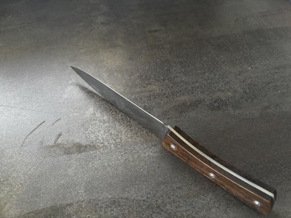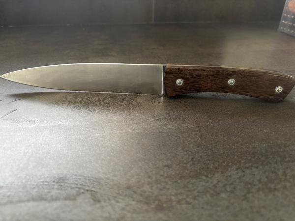 Une très bonne journée avec Jesus et sa passion qu'il fait partager. J'avais besoin d'un couteau de cuisine, on en a parlé, on l'a dessiné et on la fait . On est parti des matières brutes (bois et fer) pour arriver à ce que j'ai maintenant "Mon couteau" qui trône dans ma cuisine, un ustensile dont je me suis servi encore à midi. Merci pour ce beau travail..