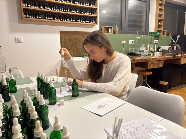 Très belle expérience !!! Nathalie nous a fait découvrir l'univers de la parfumerie. Tout était parfaitement organisé, bien préparé. Moment cocooning sans temps superflu. C'était intense ; j'ai beaucoup appris. J'ai vraiment apprécié le professionnalisme de Nathalie et sa gentillesse. Nous sommes reparties avec notre propre parfum. Très belle découverte. Je recommande ++++. J'aimerais renouveller cette expérience en ayant peut être une idée plus précise de mes goûts (étant d'un naturel très indécis j'ai eu un petit peu de mal à choisir mais heureusement Nathalie m'a guidée). Le groupe était très sympa. Merci pour ton partage Nathalie. Je porte un autre regard sur le monde de la parfumerie grâce à toi