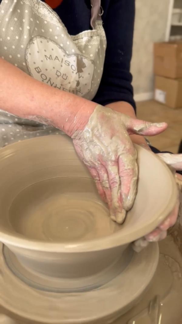 Ensuite, vous modèlerez une tasse en argile de grès. Une fois votre tasse terminée, vous passerez au tour et réaliserez un objet .