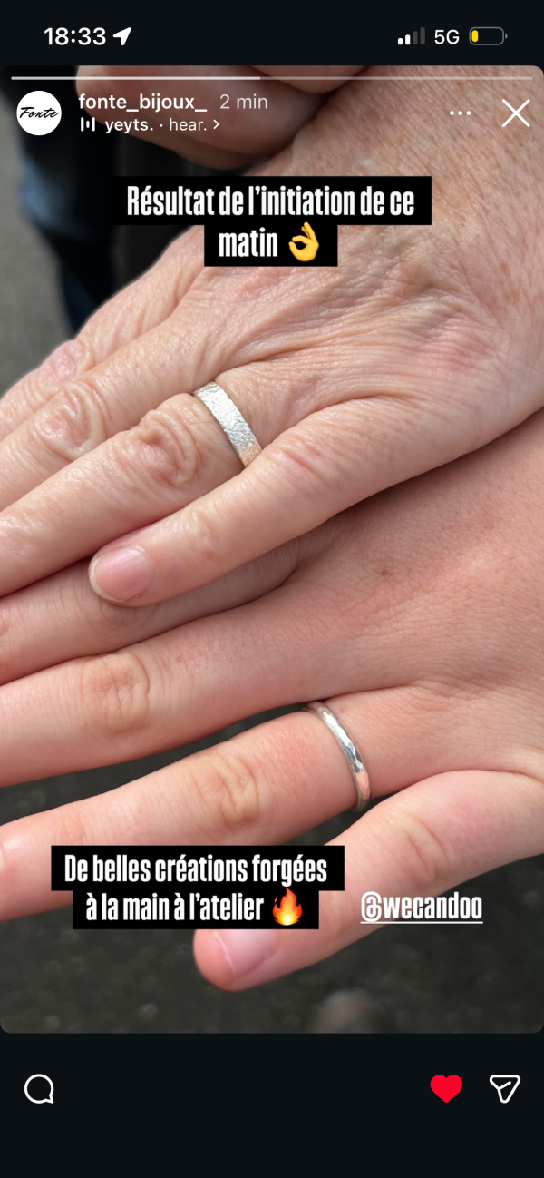 J'ai pu faire l'atelier hier et c'était franchement top. J'ai choisi de faire 2 bagues, Alexis explique bien et le rendu final m'a beaucoup plu. Je recommande !