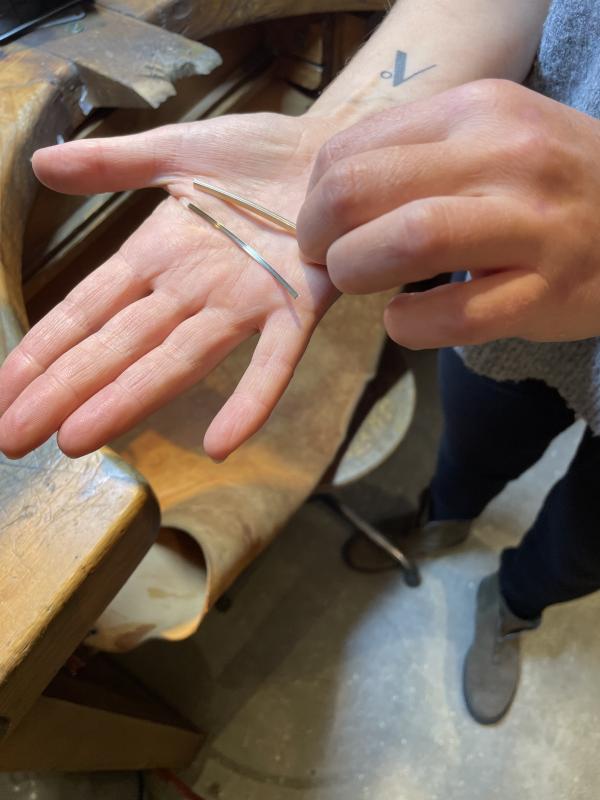 Le jour J, vous découvrez l’univers du métier de joaillier : les outils, les gestes, les étapes de fabrication. Après avoir pris vos tailles, place à la pratique. Vous découpez l’or à la scie, formez vos anneaux à l’aide du triboulet et du maillet, puis brasez au chalumeau pour refermer parfaitement chaque alliance. Finitions et ajustements viennent parfaire votre travail.